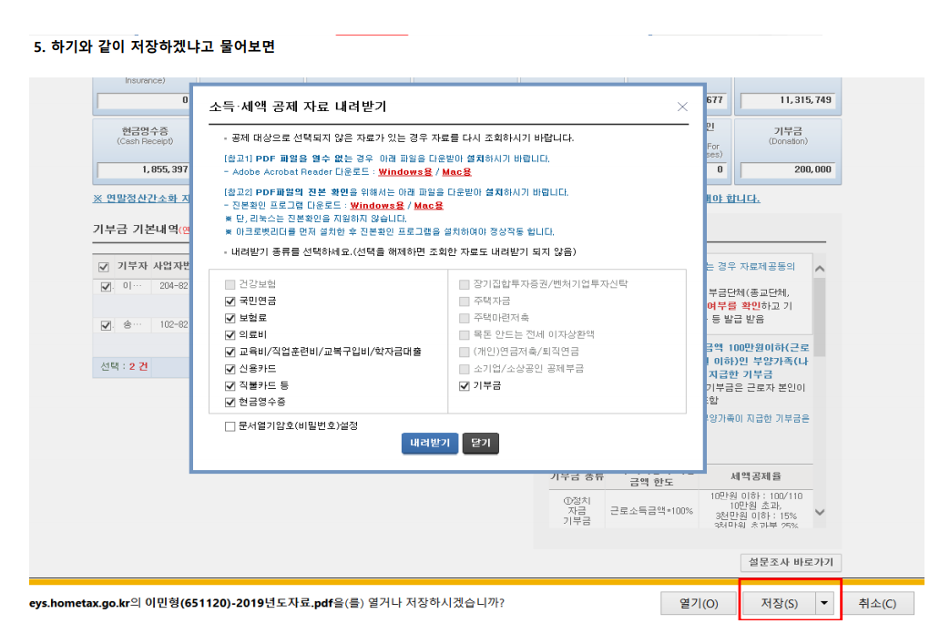 1.연말정산간소화서비스 조회항목 PDF파일 인쇄물 제출 (홈택스 조회자료)