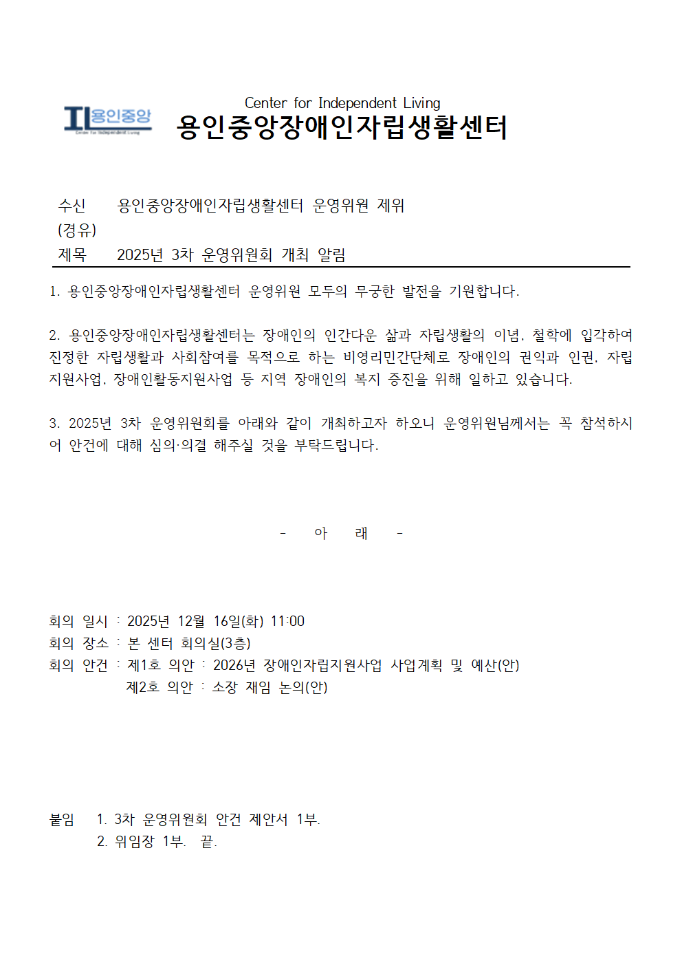 2025년 3차 운영위원회 개최 알림
